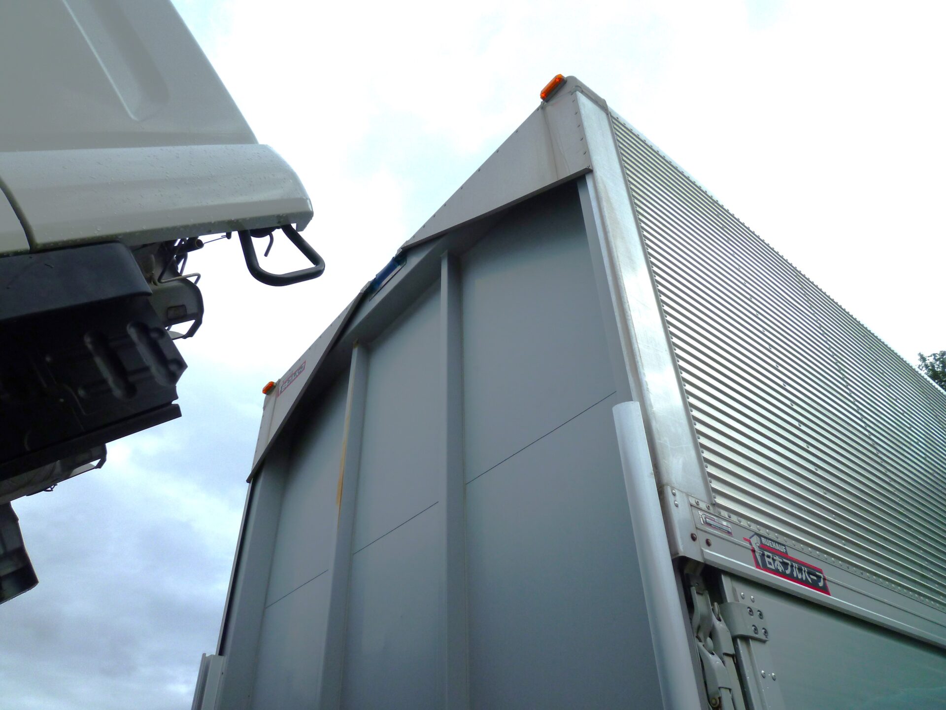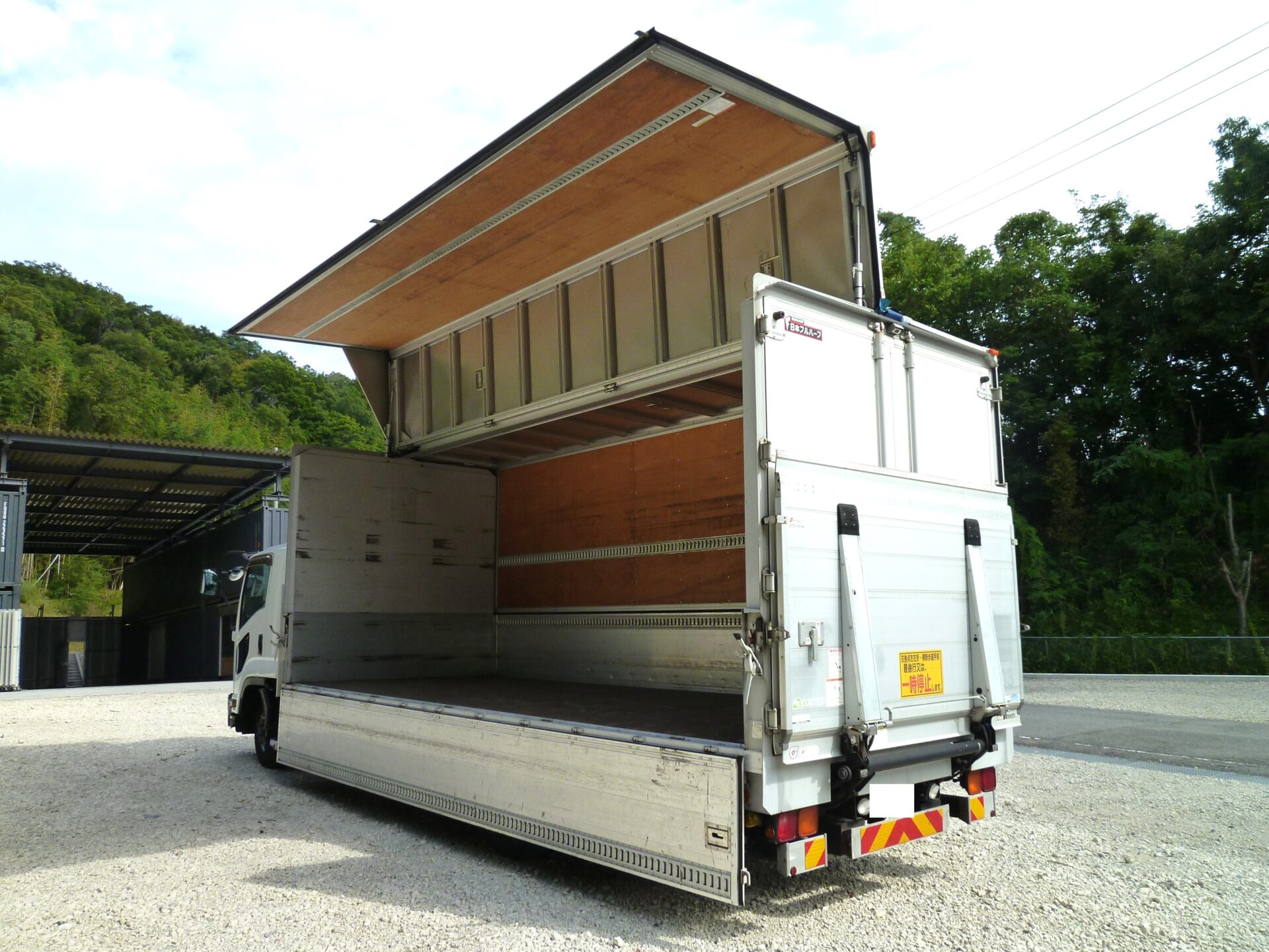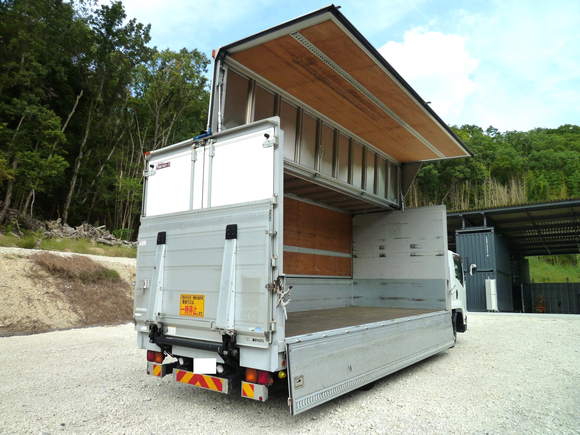 日本フルハーフ 型式/DMS 工番/W6H4159 床/板 ラッシングレール/2段 引出フック/5対 工具箱×1 極東跳上PG 型式/G21002D-B3MRA2 KITNo.17T010137N 寸法/W2,360×L1,540(mm) ストッパー迄L1,300×W2,270(mm) 渡し板有 リモコン・ラジコン付 バックアイカメラ/ICHIKOH 庫内/キズ・ヘコミ・汚れ・穴あり