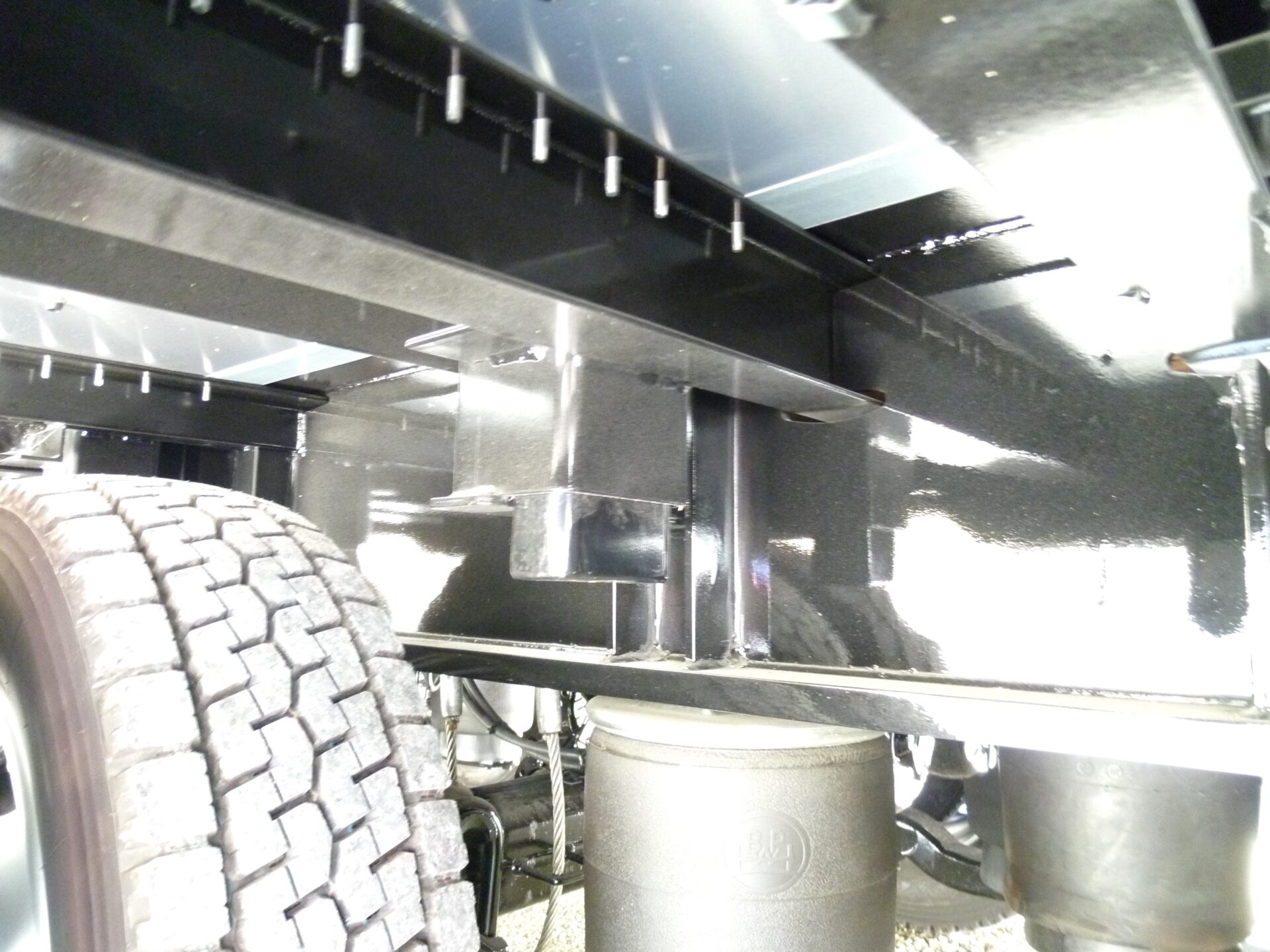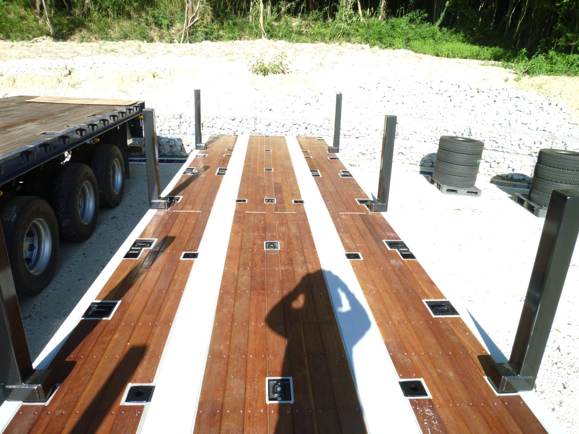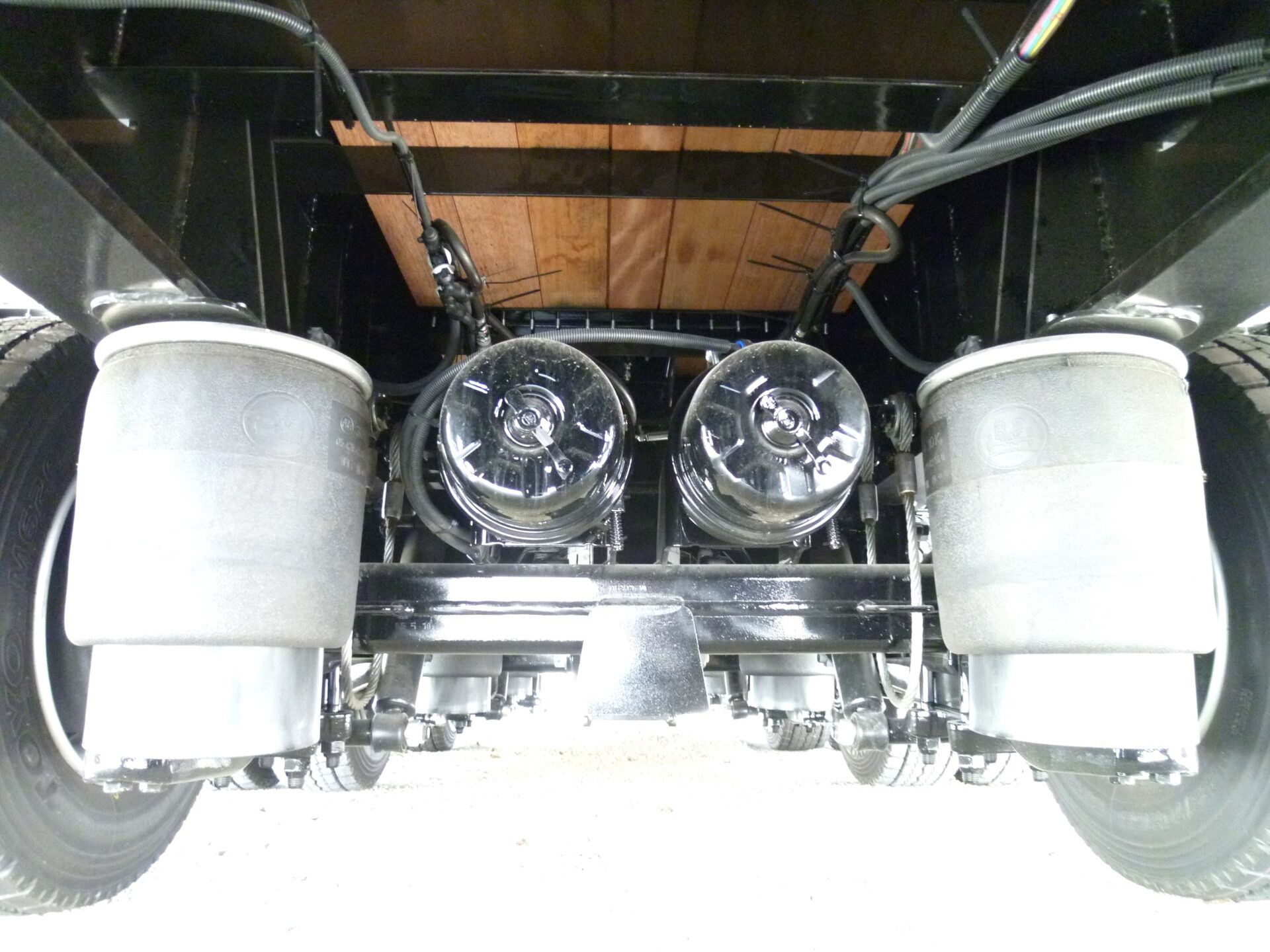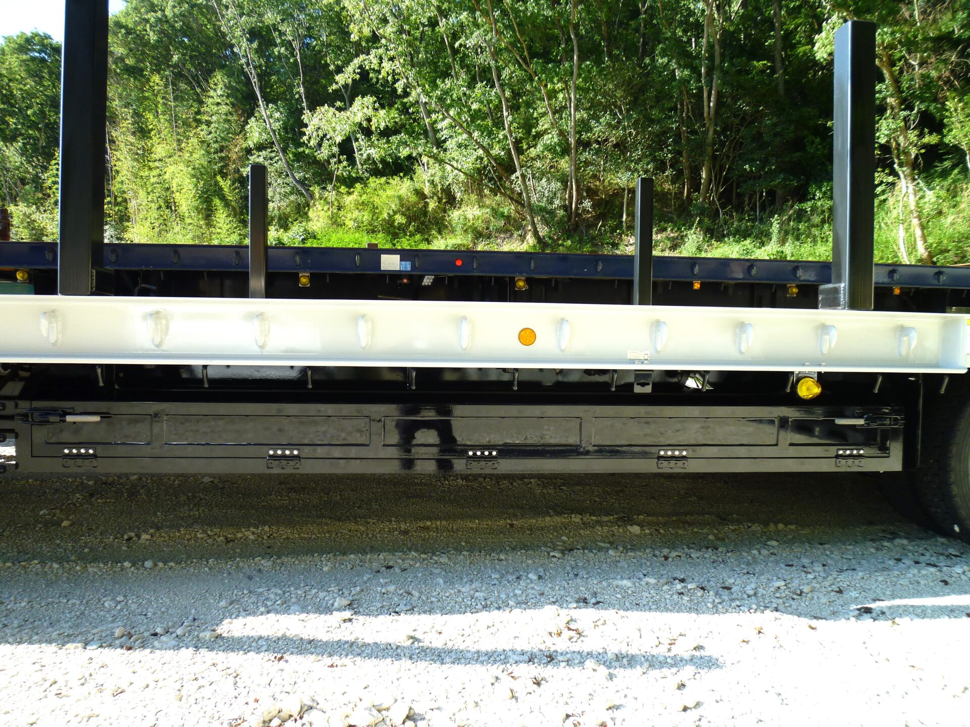 日本トレクス 型式/PLB34114 製造年月/2025-08 床/板張り エアサス 段付き(高さ540mm) リフトアクスル中軸残し 埋込フック 前段/3対 後段/8対 センター/6ヶ所 スタンション穴 前段/6ヶ所 後段/33ヶ所 ロープフック 前段/9ヶ所 後段/37対 前方/2ヶ所 後方/6ヶ所 工具箱×3 物入れカゴ