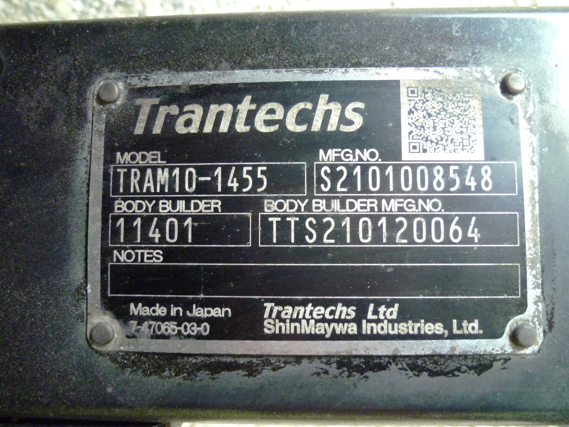 トランテックス 製造番号/V000H57 左サイドドア/片開き 寸法/H2,170×W1,230(mm) 床/板張り ラッシングレール/2段 工具箱×1 トランテックス跳上PG MODEL/TRAM10-1455 MFGNo.S2101008548 リモコン 寸法/L1,550×W2,390(mm)ストッパー迄L1,310×W2,260(mm) リヤエアサス バックアイカメラ/クラリオン