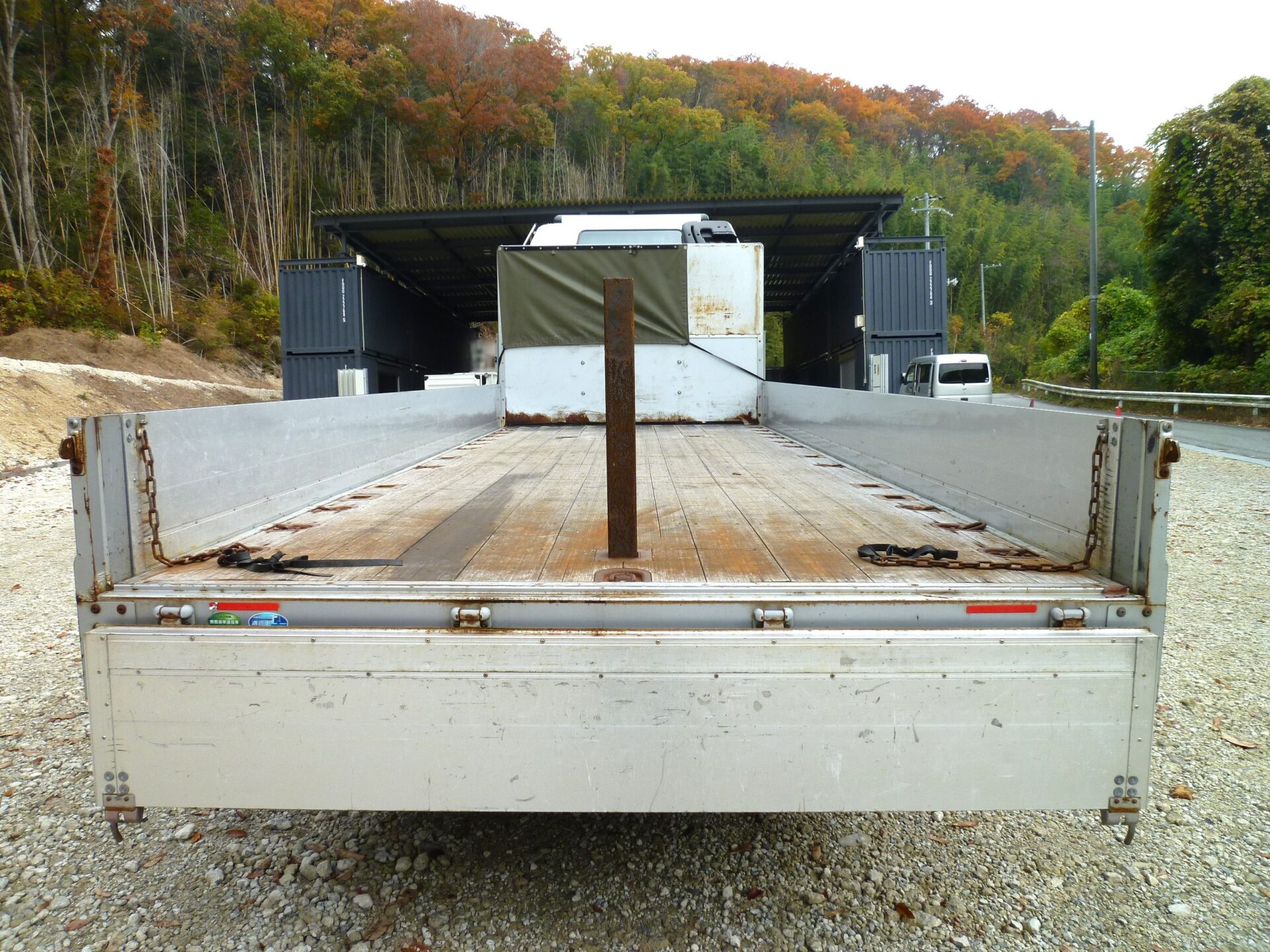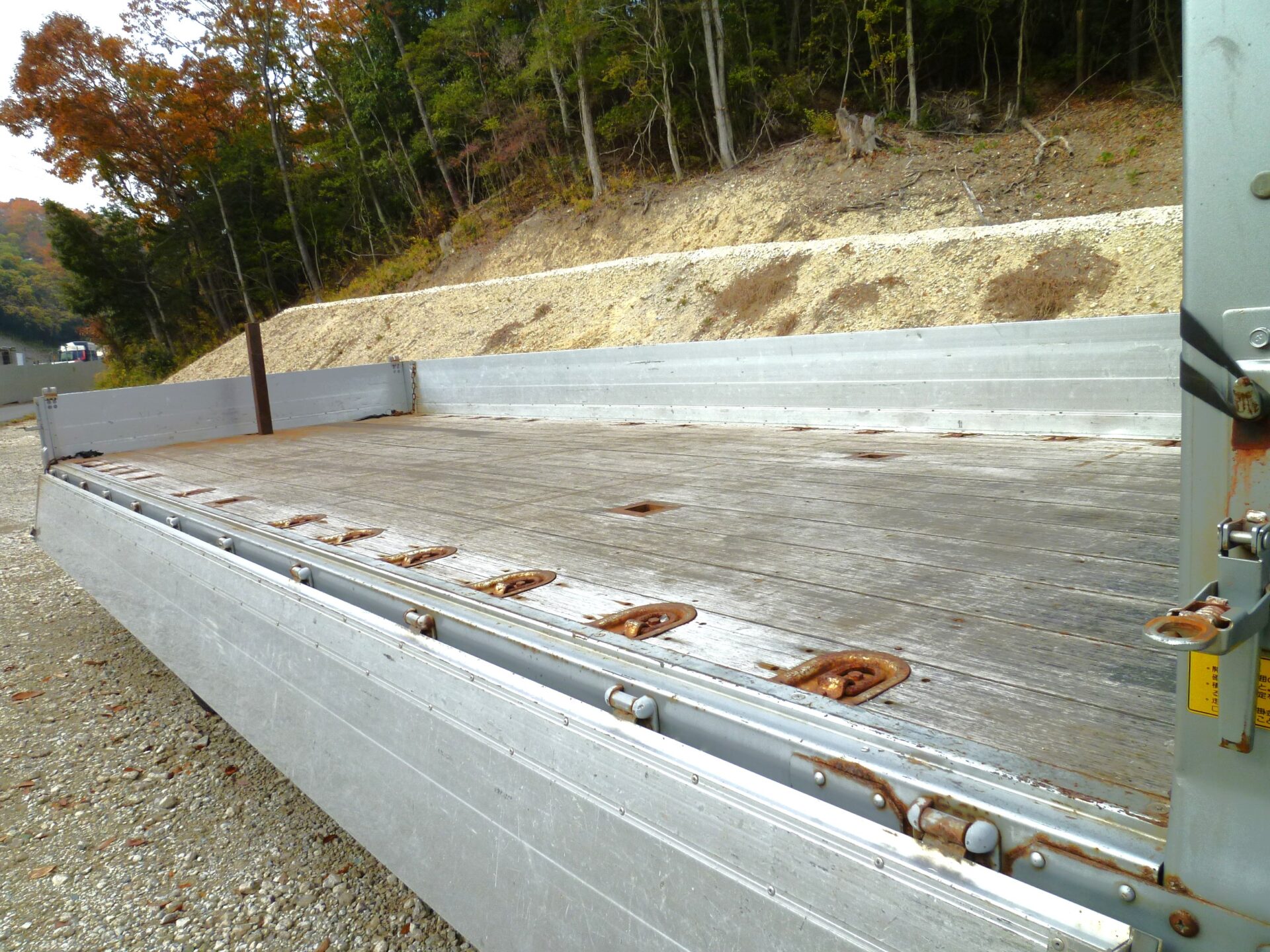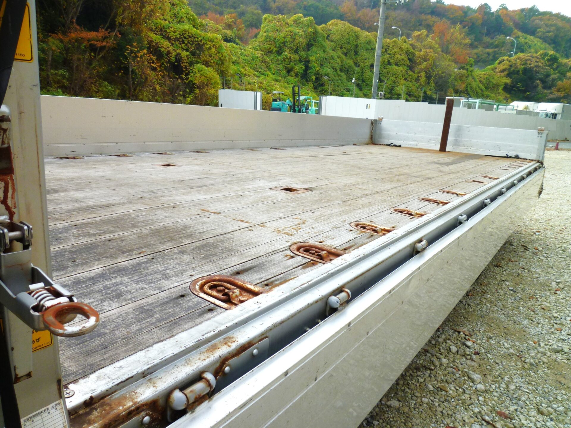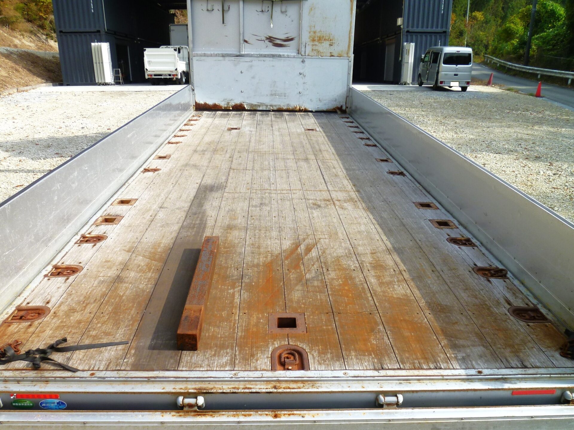 小平産業/A189001321(コーションプレート無) アルミブロック/3方開 シート台 工具箱×1 物入×1 床/板張り 埋込フック/10対 後方1コ スタンション穴/9ヶ所 鳥居部物掛けフック/4コ リアエアサス メッキパーツ 煽り内外/スリキズ・凹み多数・ふくれ小