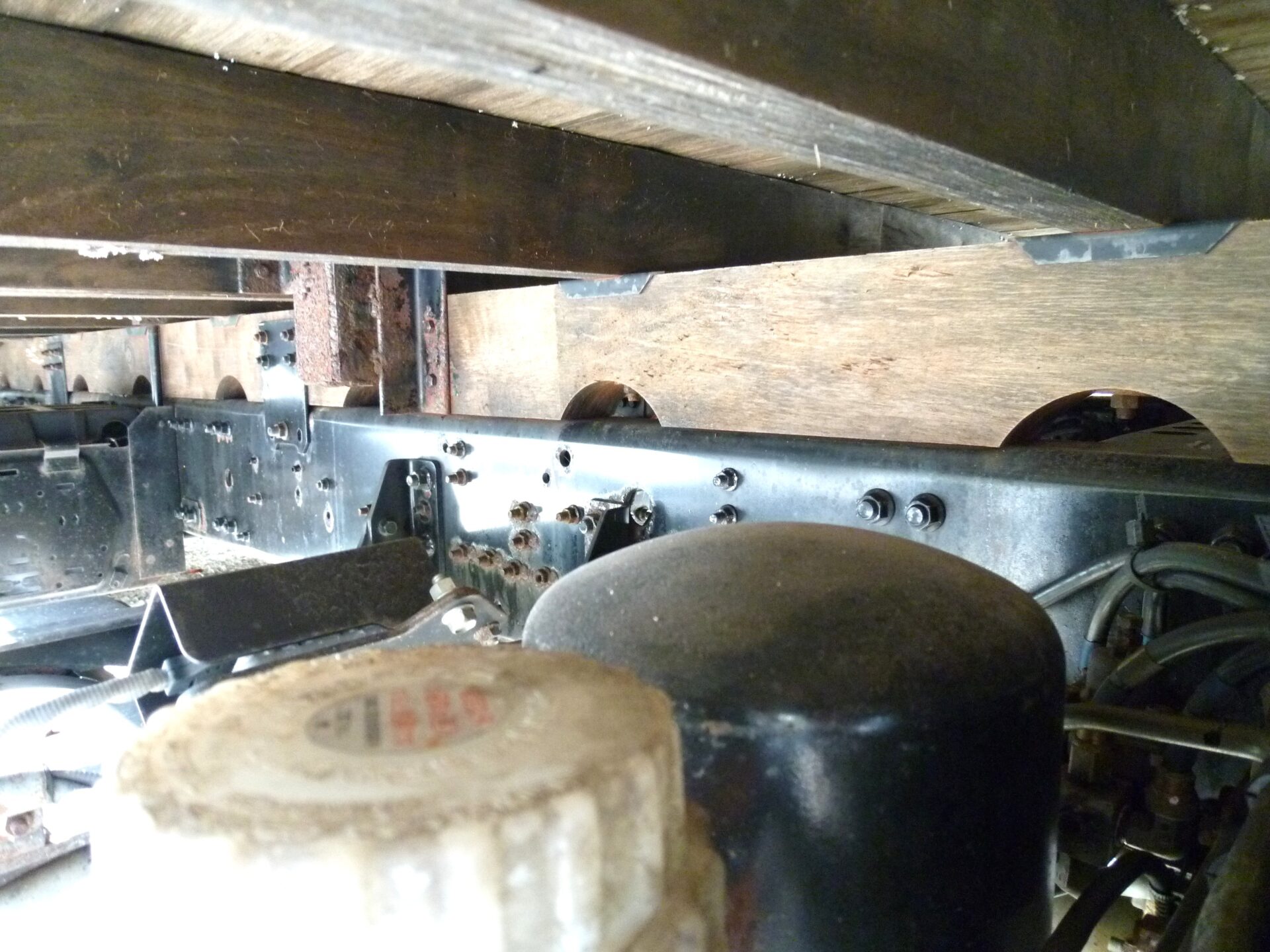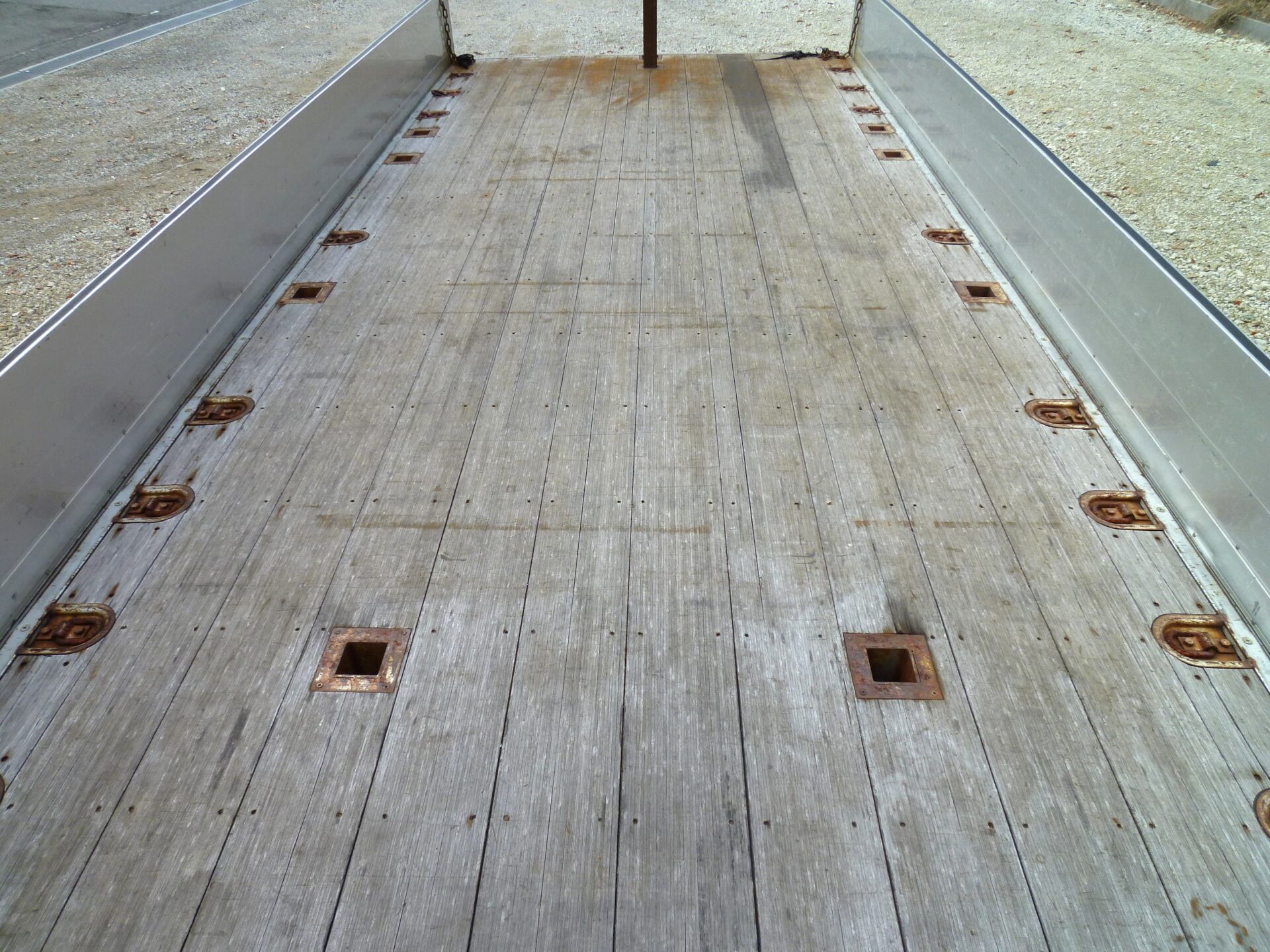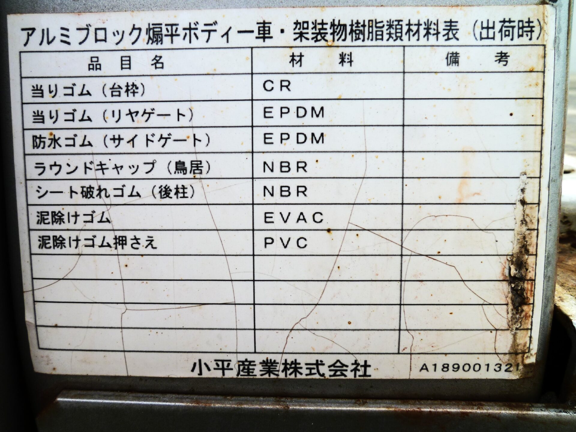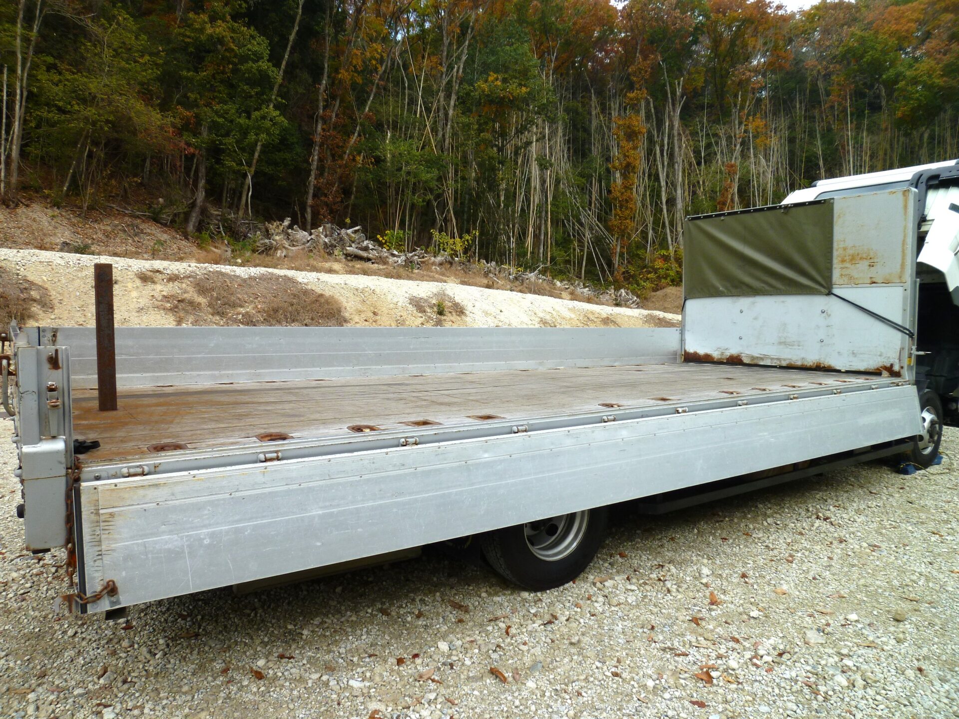 小平産業/A189001321(コーションプレート無) アルミブロック/3方開 シート台 工具箱×1 物入×1 床/板張り 埋込フック/10対 後方1コ スタンション穴/9ヶ所 鳥居部物掛けフック/4コ リアエアサス メッキパーツ 煽り内外/スリキズ・凹み多数・ふくれ小