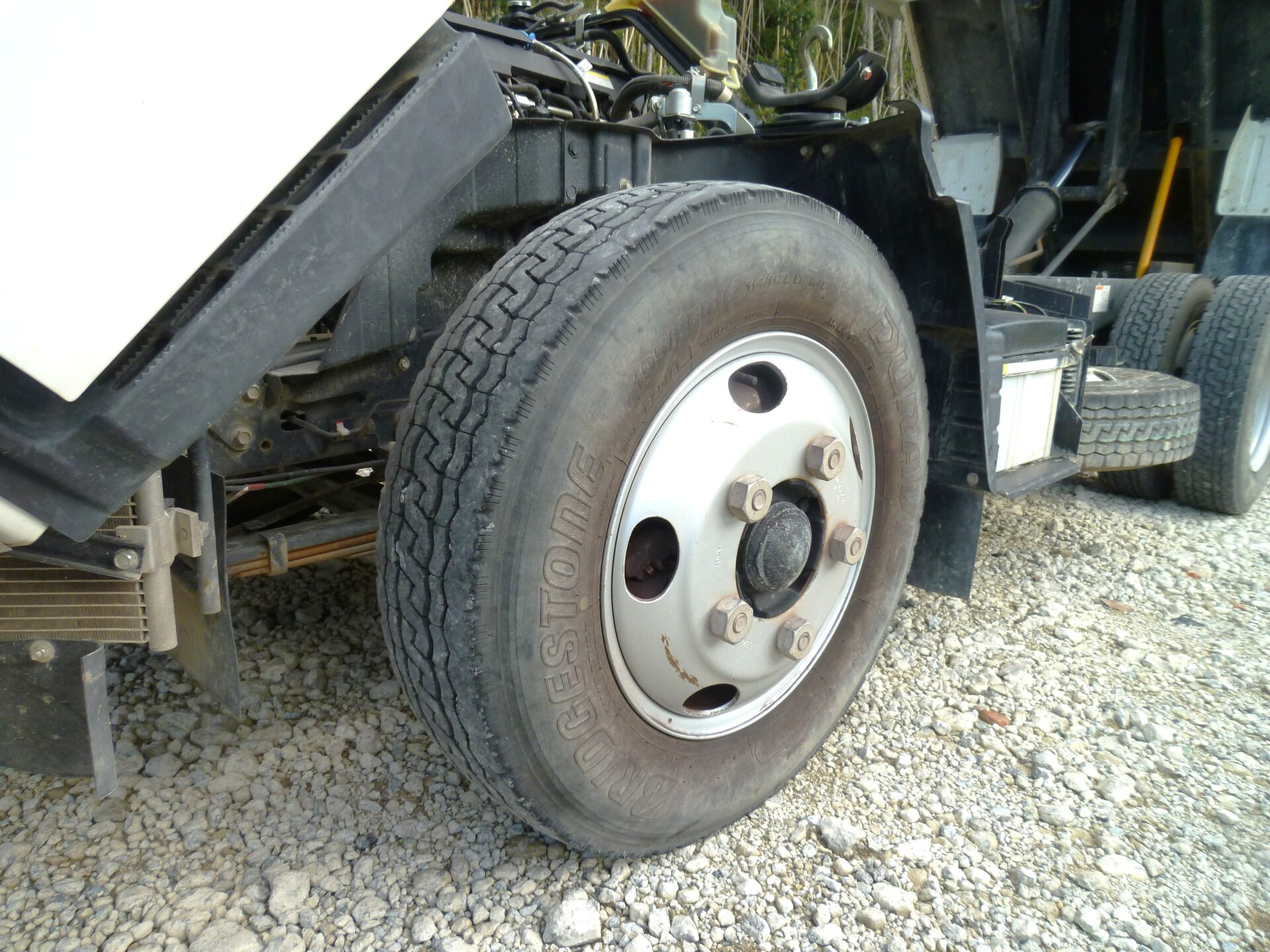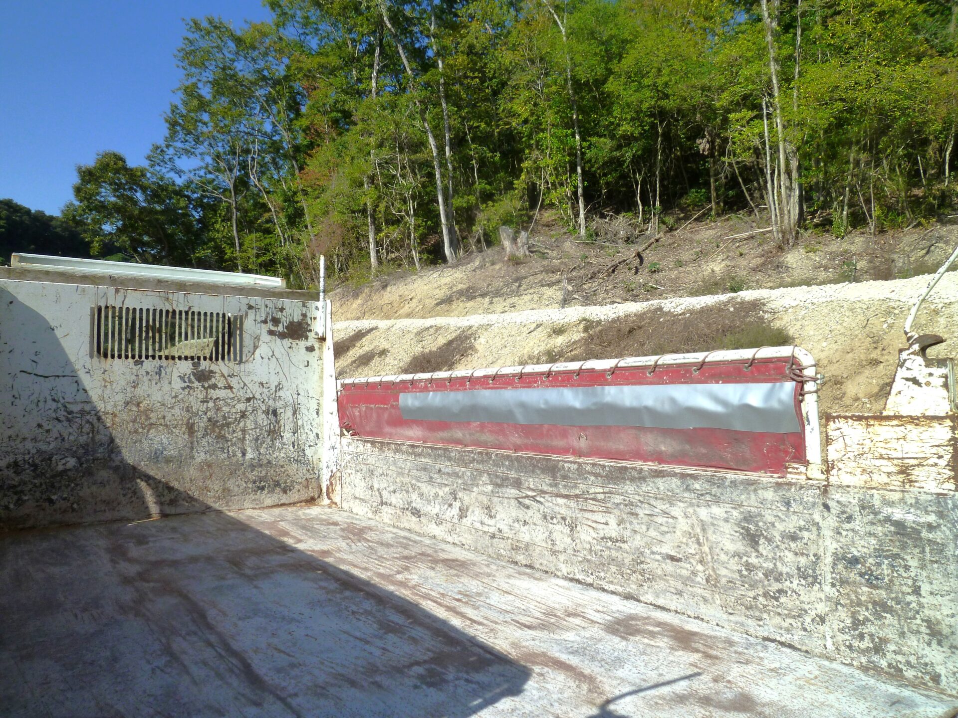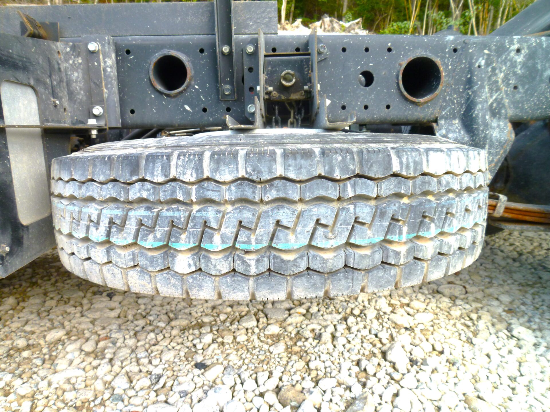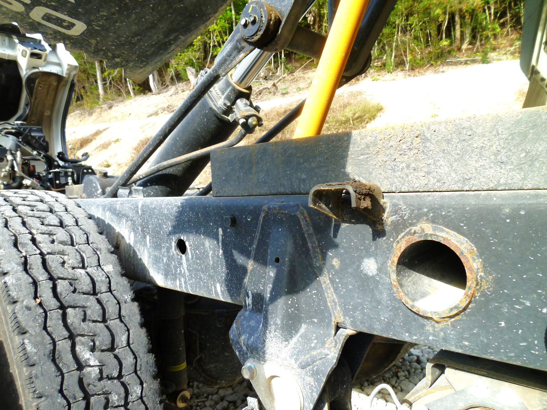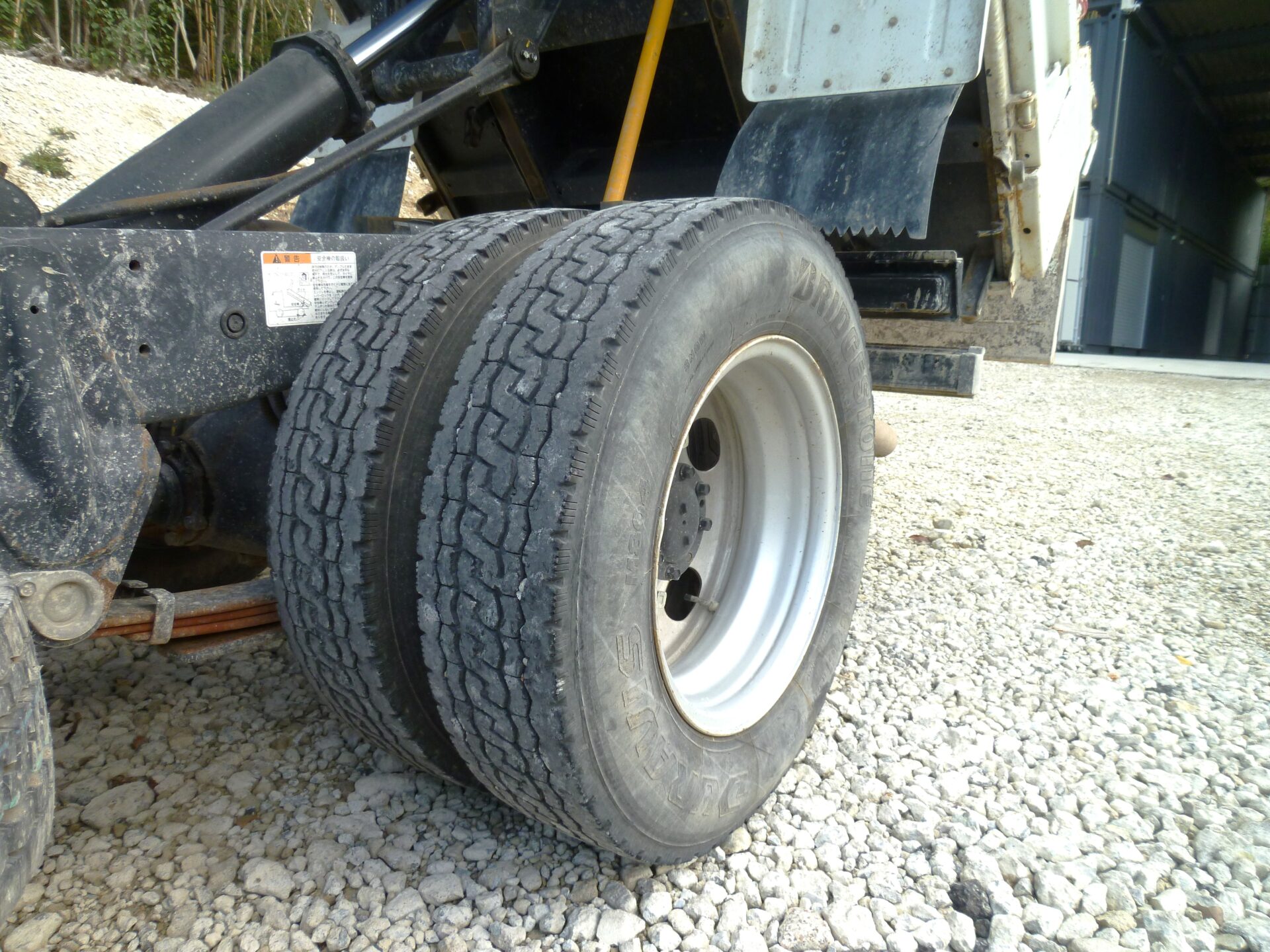 新明和 MODEL/DR2-0110SY MFG.No./S10711007 シートデッキ コボレーン 荷台内外/凹み・スリキズ・サビ多数 看板跡 コボレーン補修 荷台・足回り/セメント付着 後煽り安全ピン無し