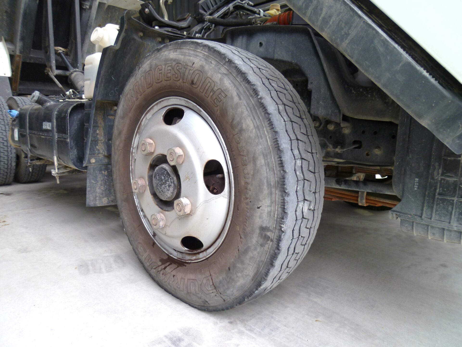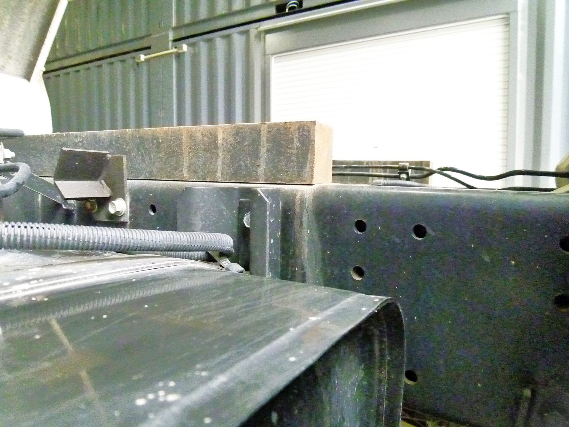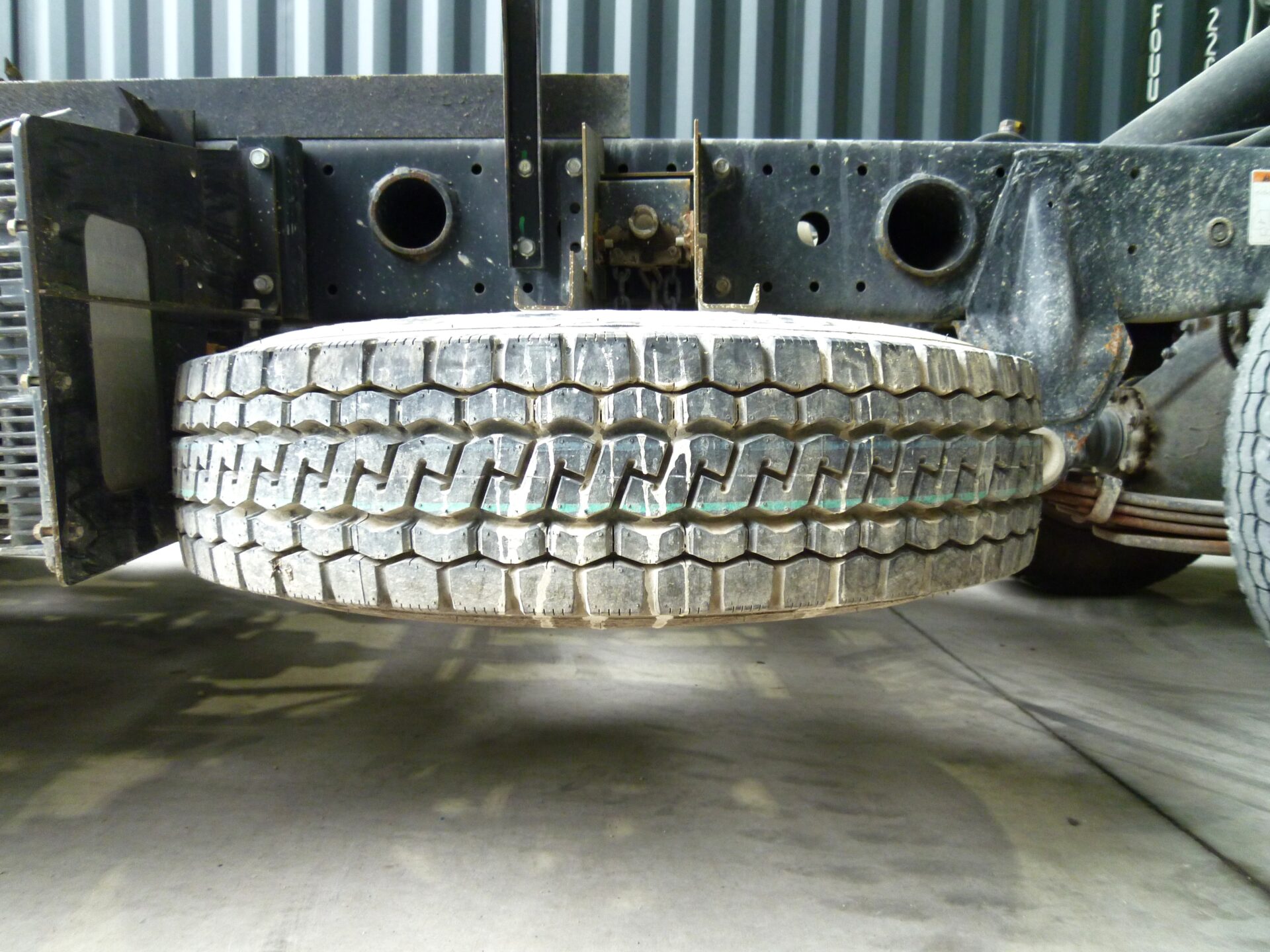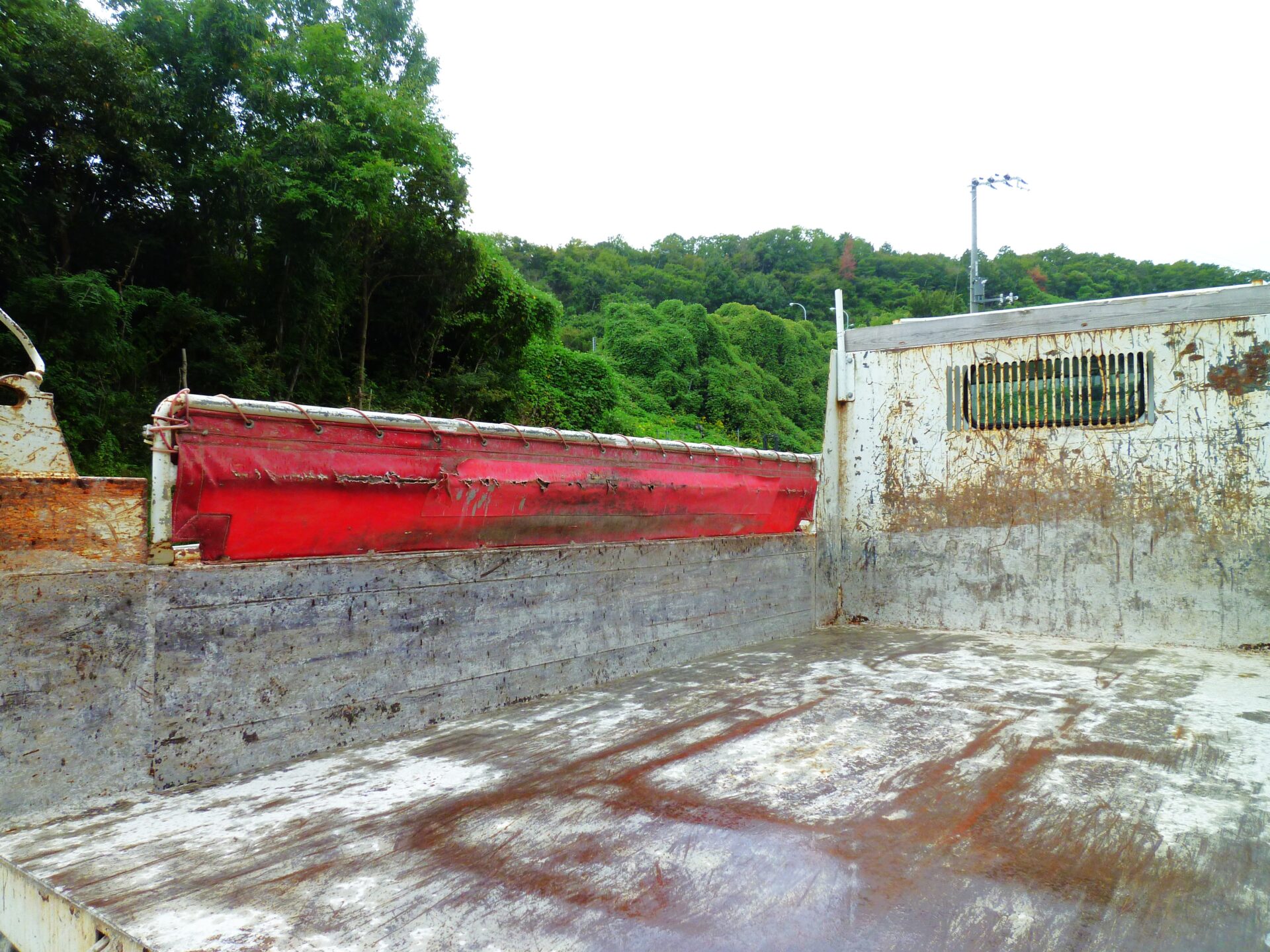 新明和 MODEL/DR2-0110SY MFG.No/S10812423 コボレーン付 シートデッキ 荷台内外/凹み・スリキズ・サビ多数 看板跡 荷台・足回り/セメント付着 後煽り安全ピン無し コボレーン補修