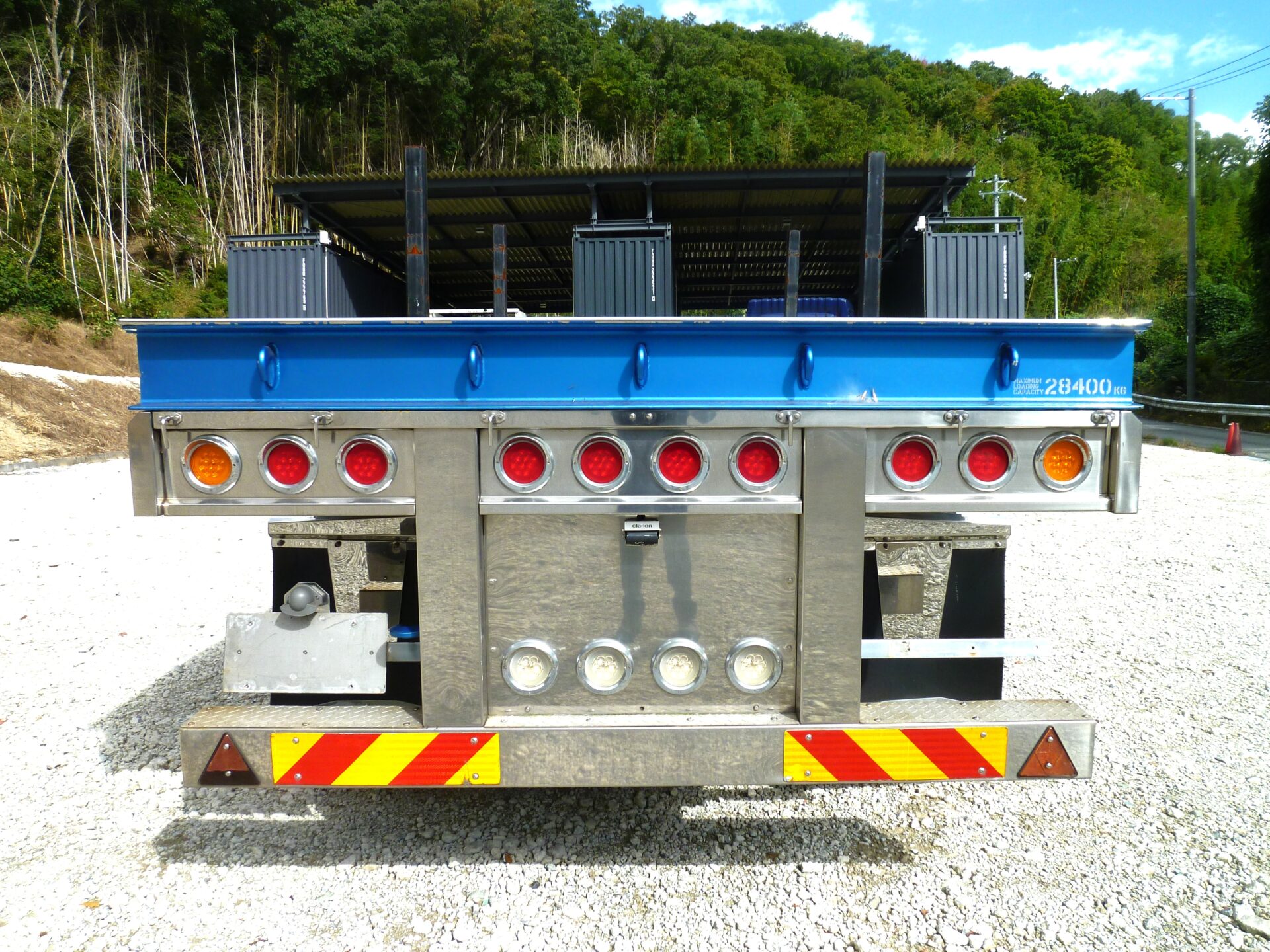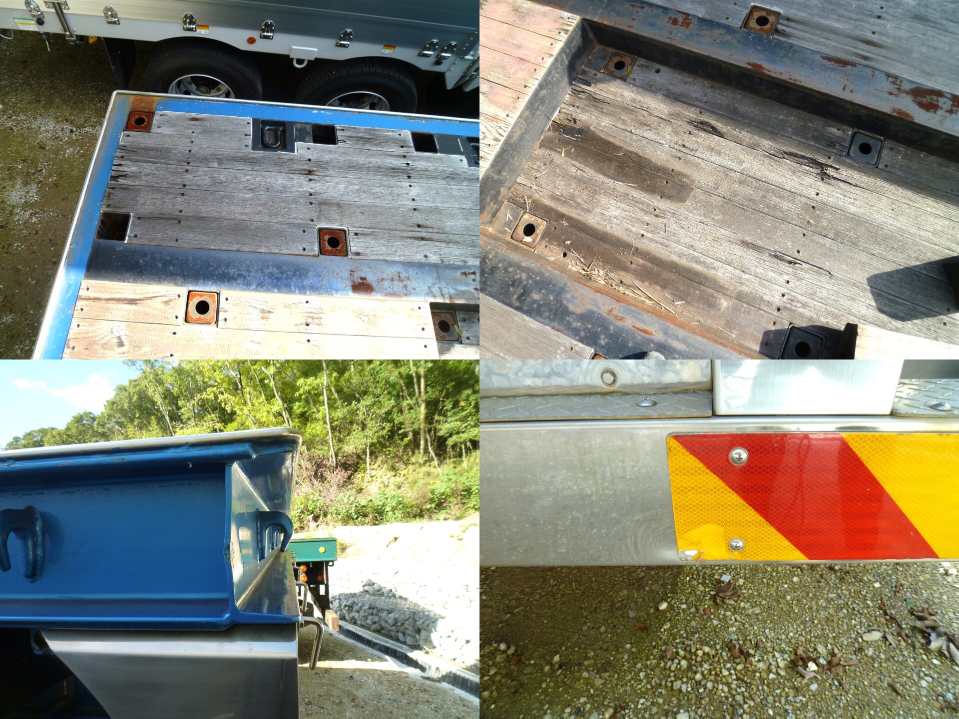 トレクス/ PFB34118 製造年月/2014年11月 2デフ引き 床/板張り スタンション穴/外側9対・中側11対・内側10対・前方4箇所 アルミホイール リフトアクスル (後軸残し) クラリオン製バックアイカメラ ステンレス製物入れ/大型・小型左右2箇所ずつ 床板/痛み・めくれあり