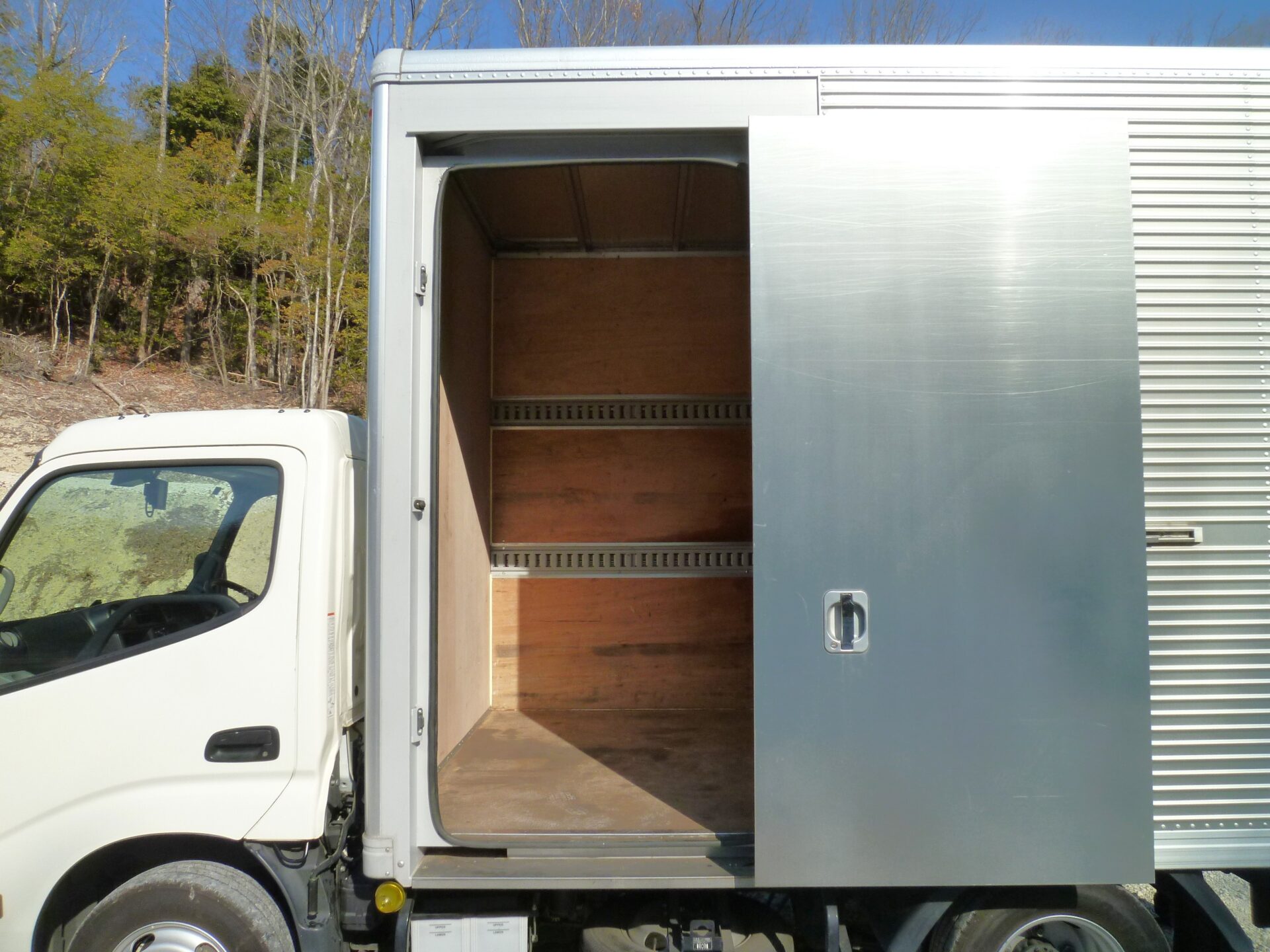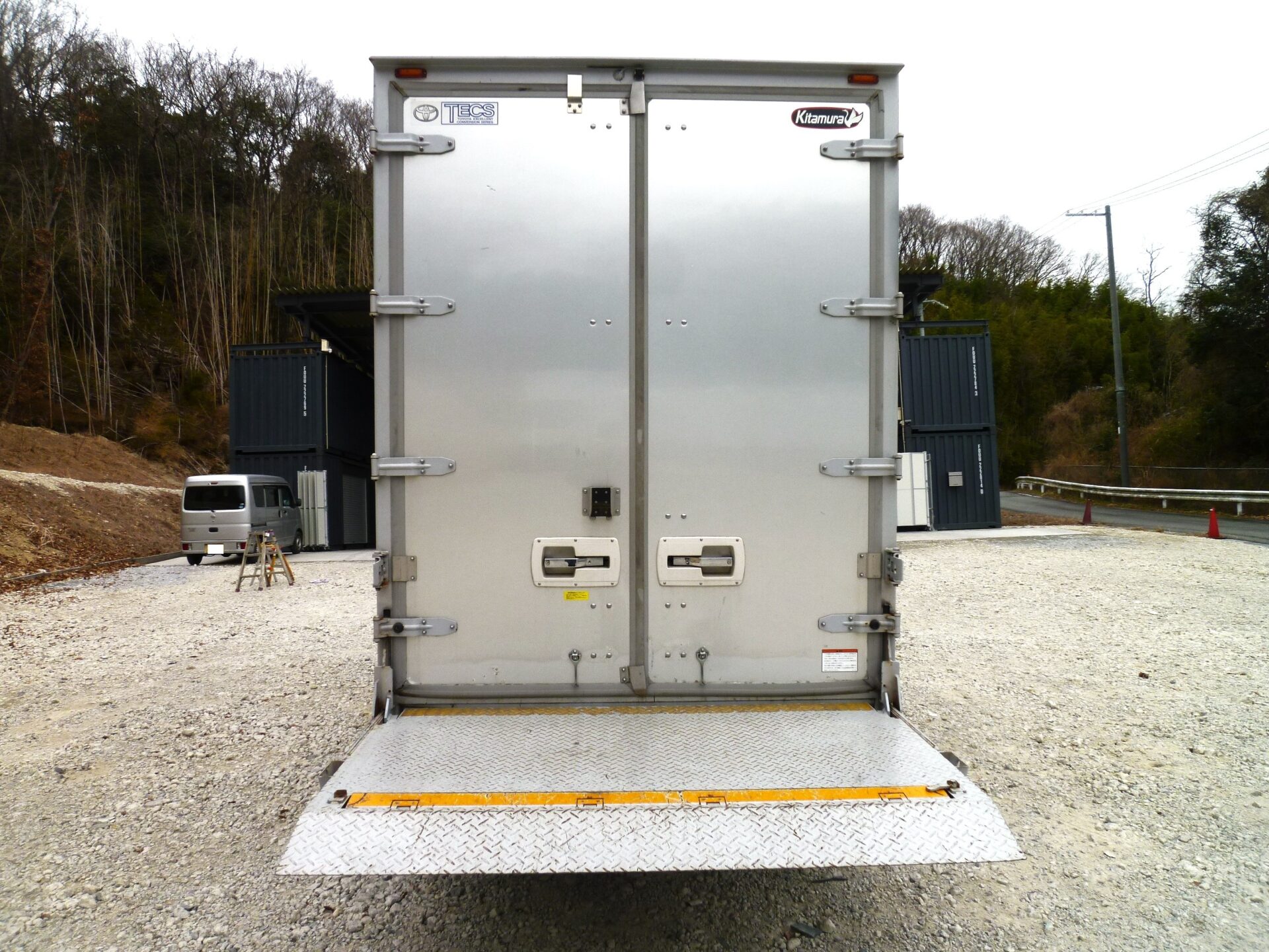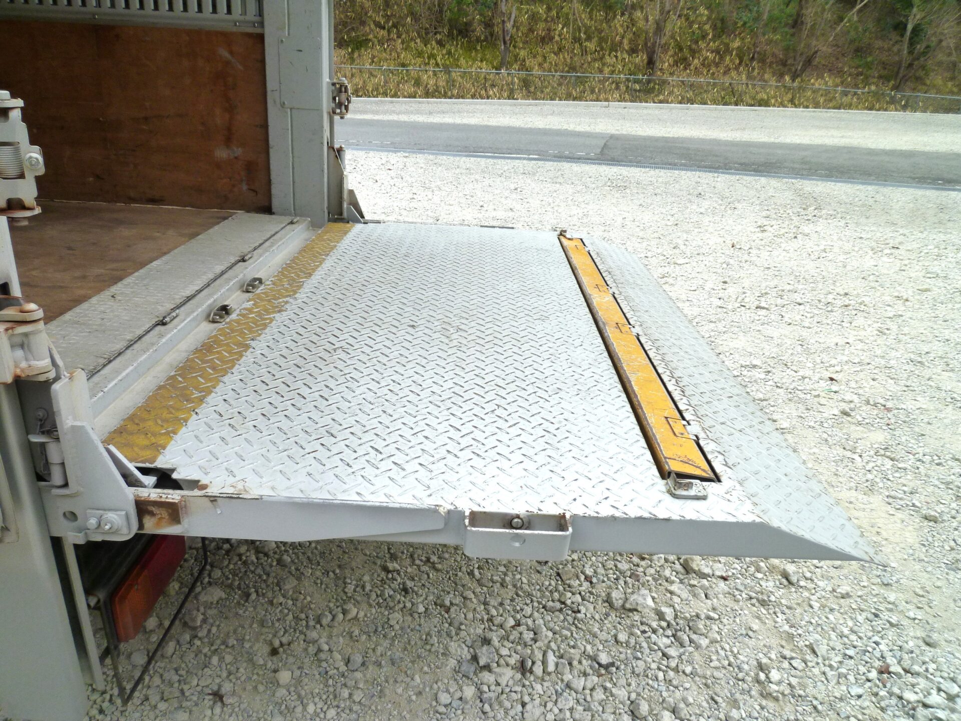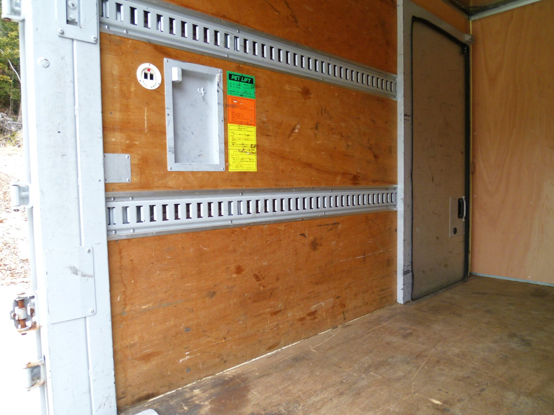 北村製作所/T21-2185 製造/2020-12 床/板 ラッシングレール/2段 左スライドドア 左右通風口 PETLIFT/SL60P 能力600㎏ 寸法/L1,150㎜×W1,790㎜ 渡し板 バックアイ/クラリオン ボデー内/キズ・油汚れ 右コルゲート部前方修理跡