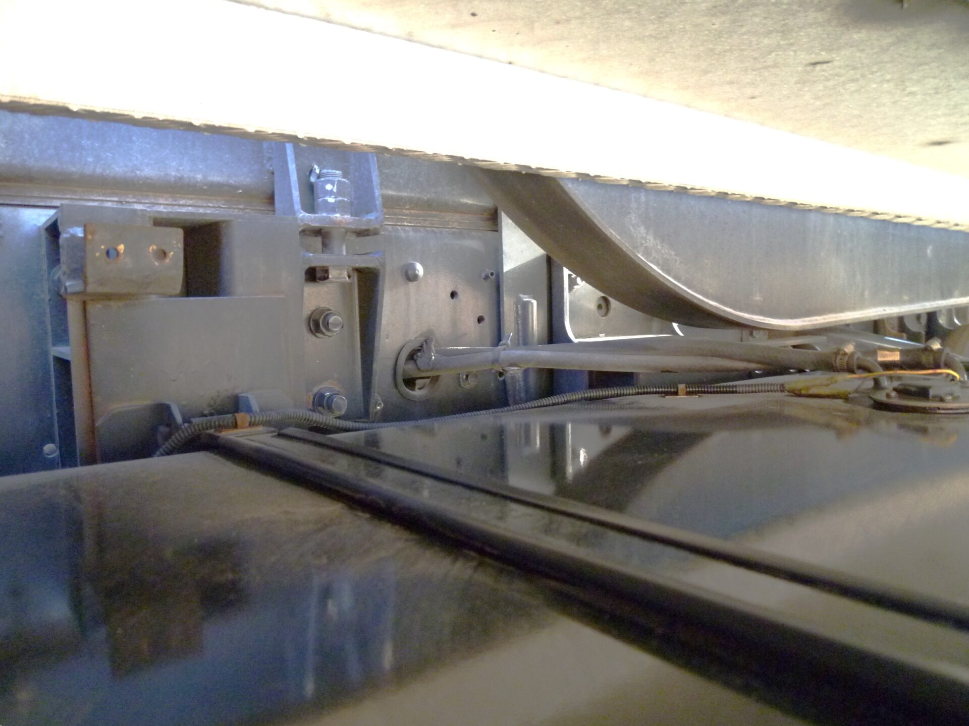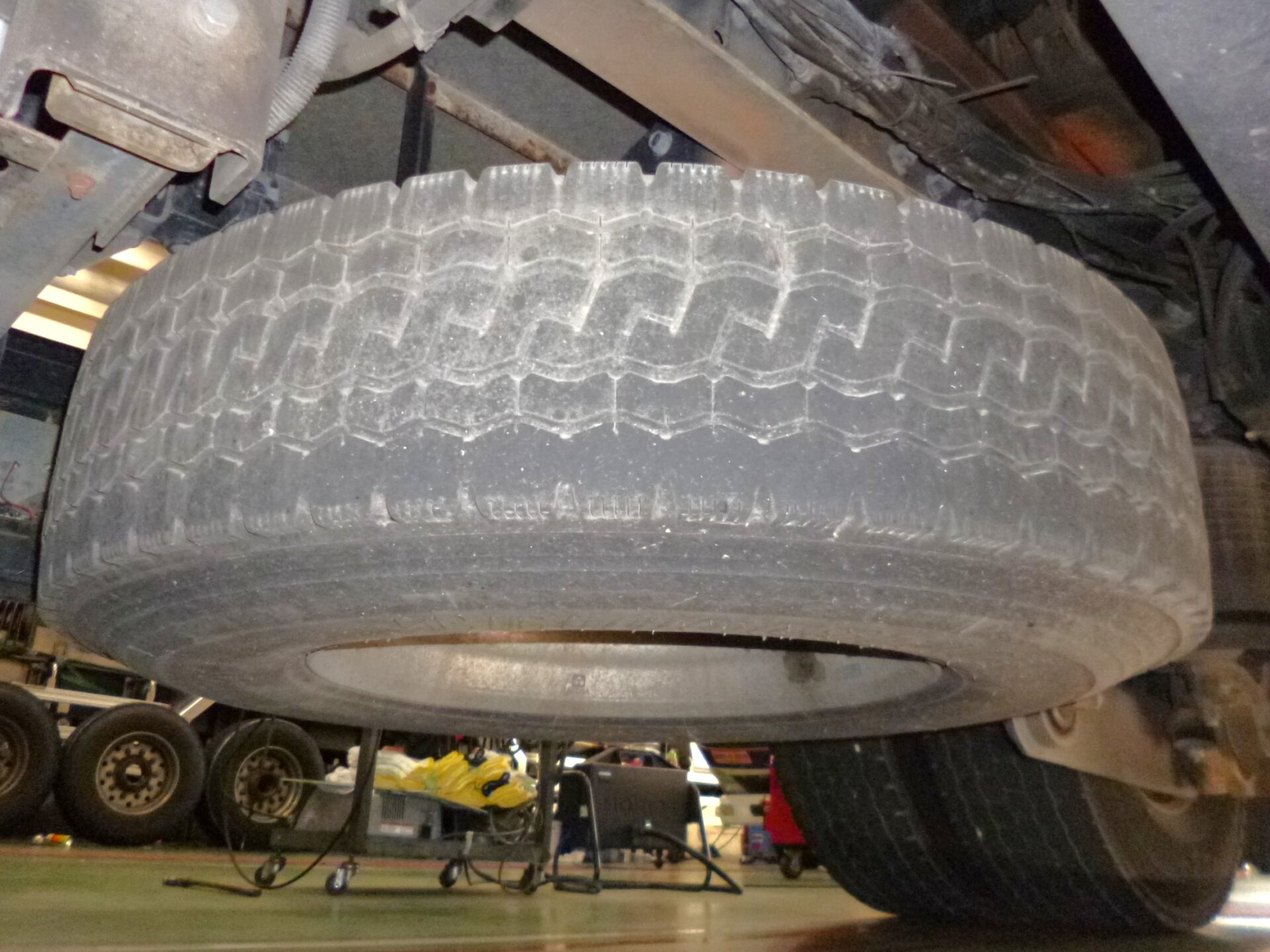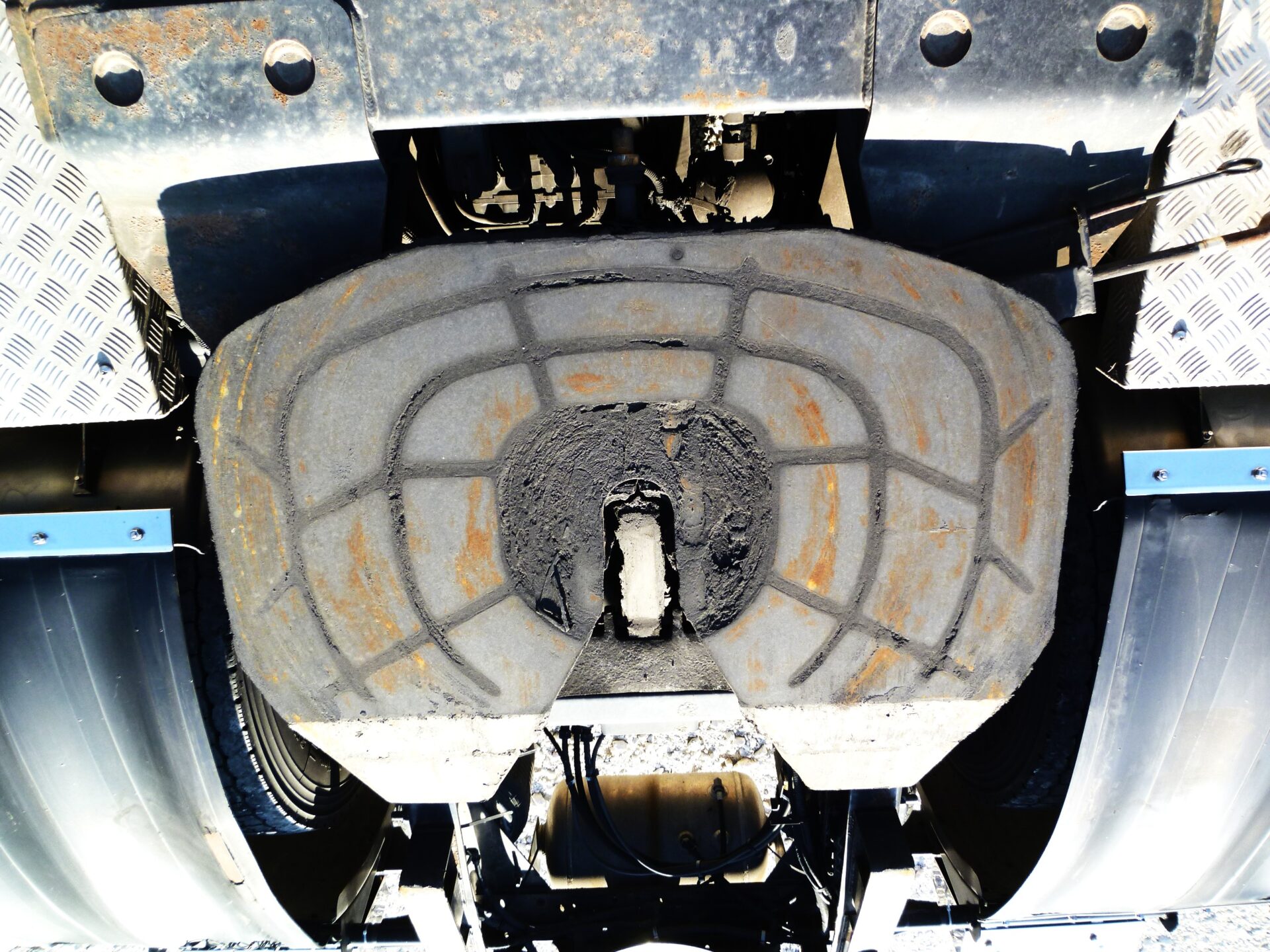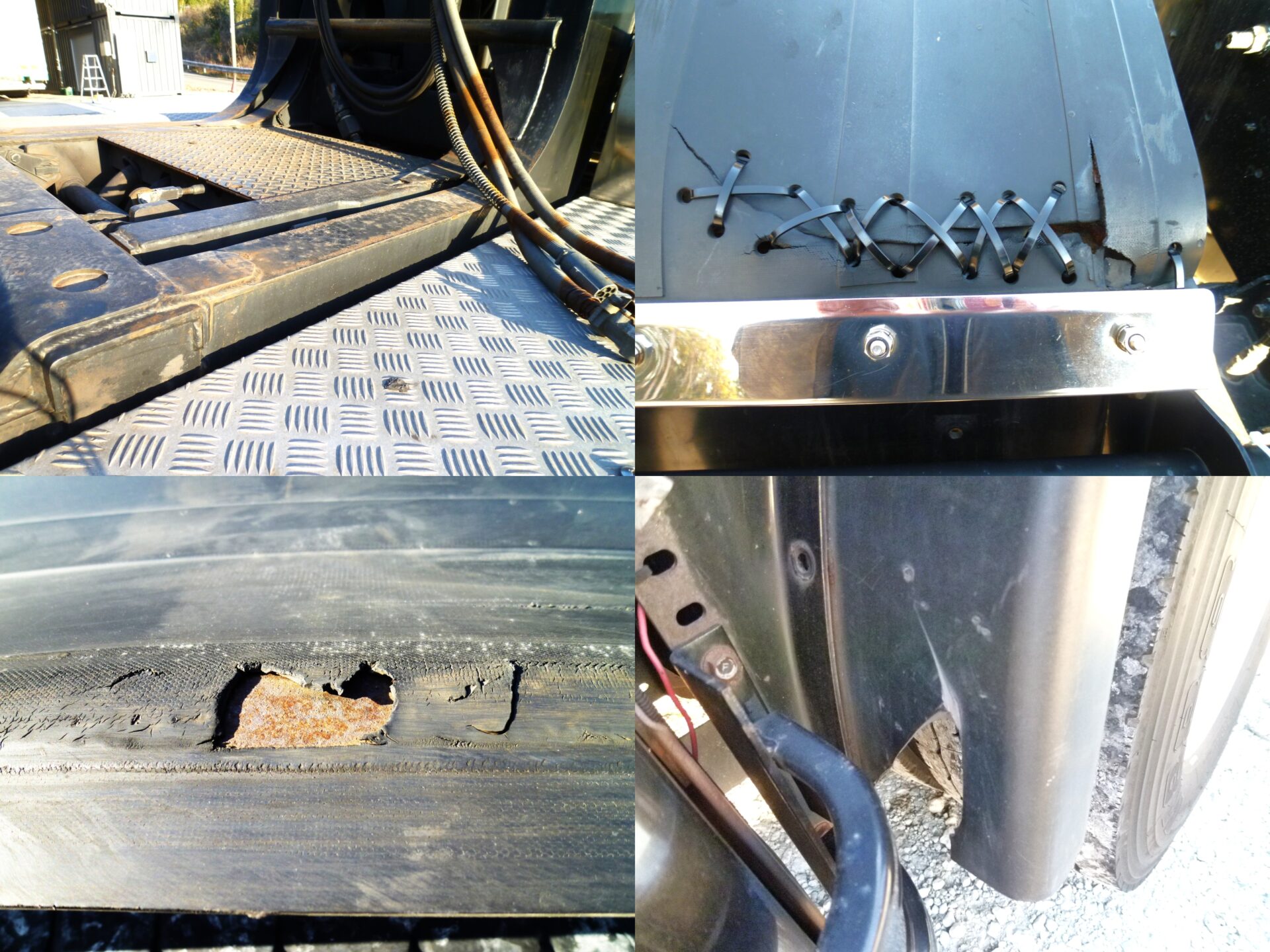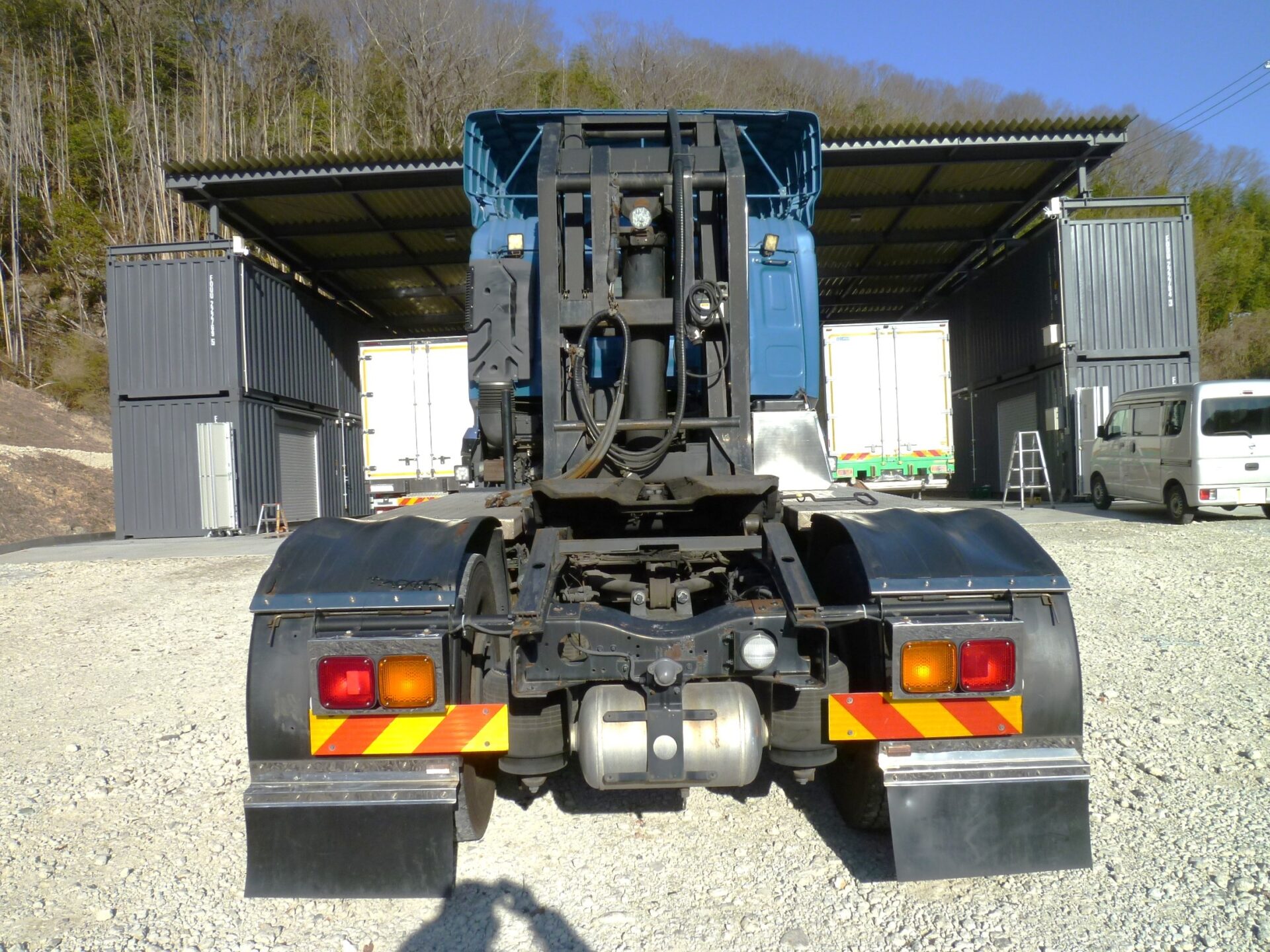 ハイリフト 新明和/TRH85-60K MFGNo.F411427649 最大角度37° カプラ/ソーシン 型式/R-12 第五輪荷重/12,000kg 製造番号/D4-1754 リヤエアサス アルミホイール メッキパーツ 工具箱1コ ハイリフト部/サビあり