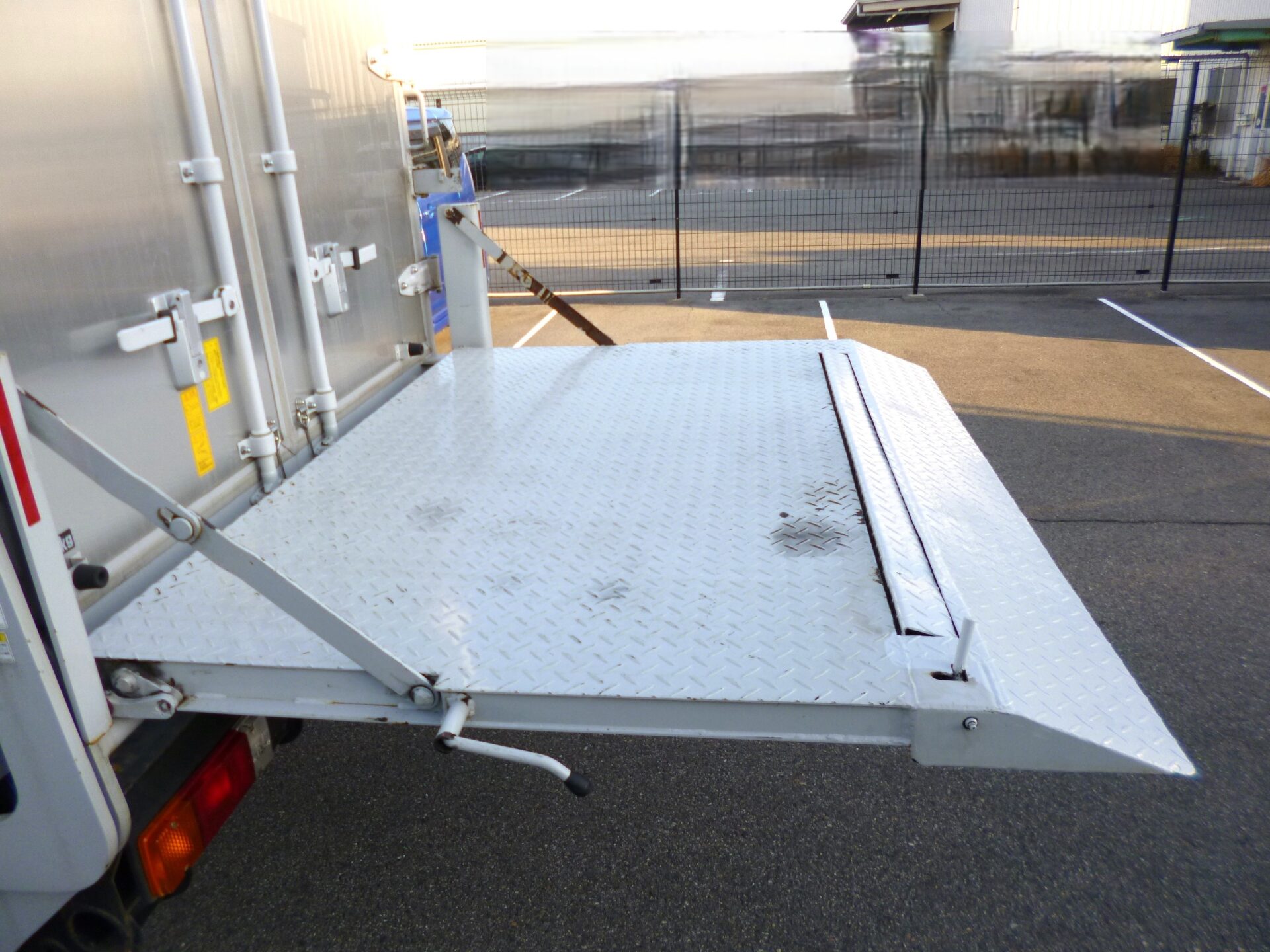 トランテックス/V077J70-02 左スライドドアH2,000×W920(mm) 左右90度ストッパー 渡し板200mm 床/板張り ラッシングレール/2段 工具箱1コ 極東開発アーム式PG 型式/S602-BISRT2 KITNo.23T080149N ゲート寸法L1,300×W1,620(mm) バックアイ/クラリオン ナビ/ケンウッド 庫内/スリキズ・凹み・汚れ有