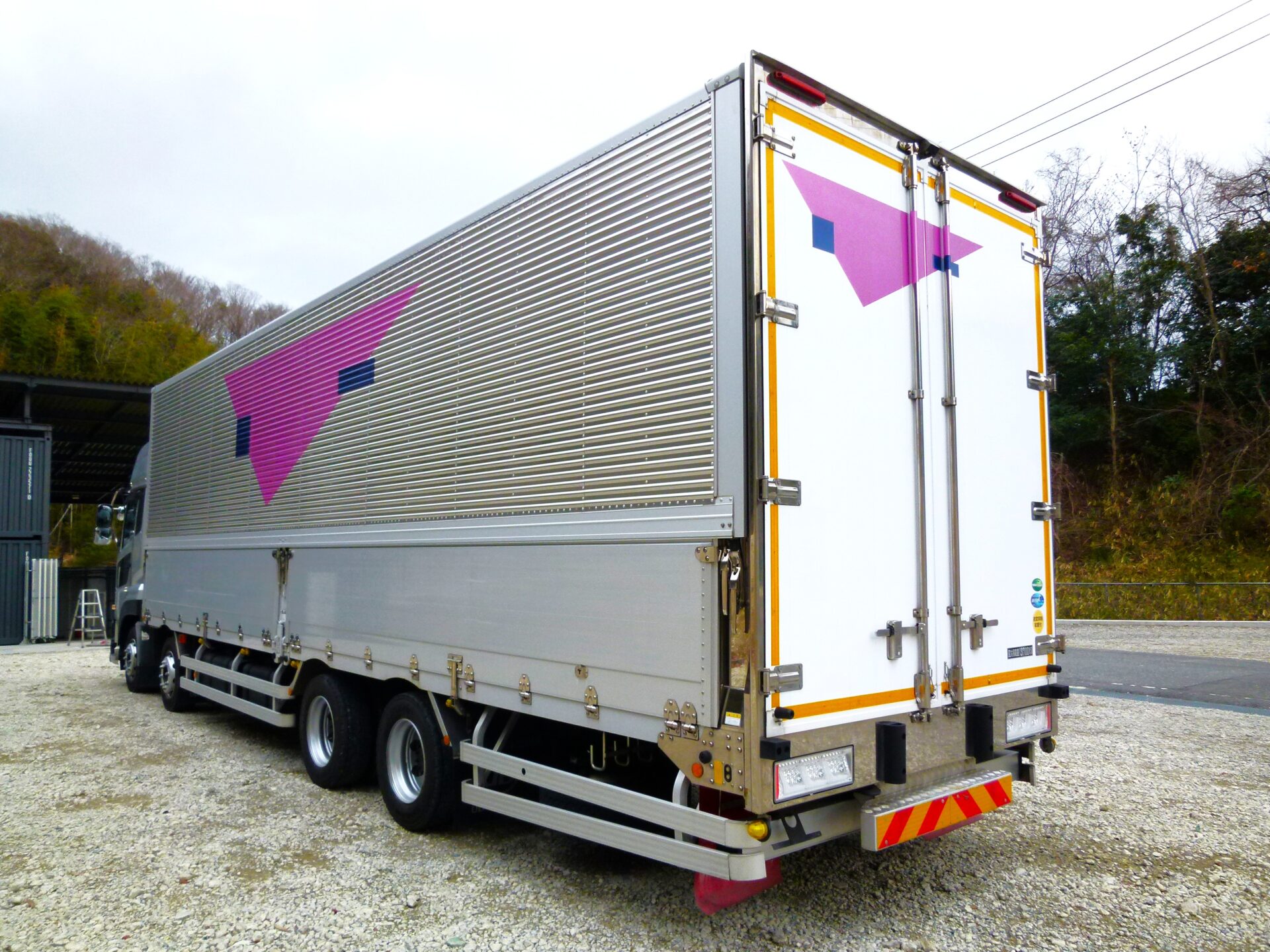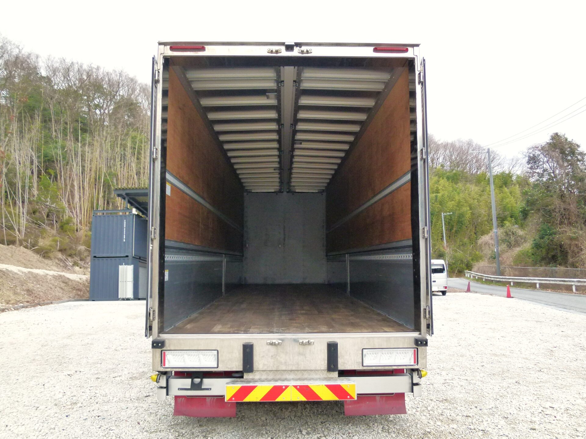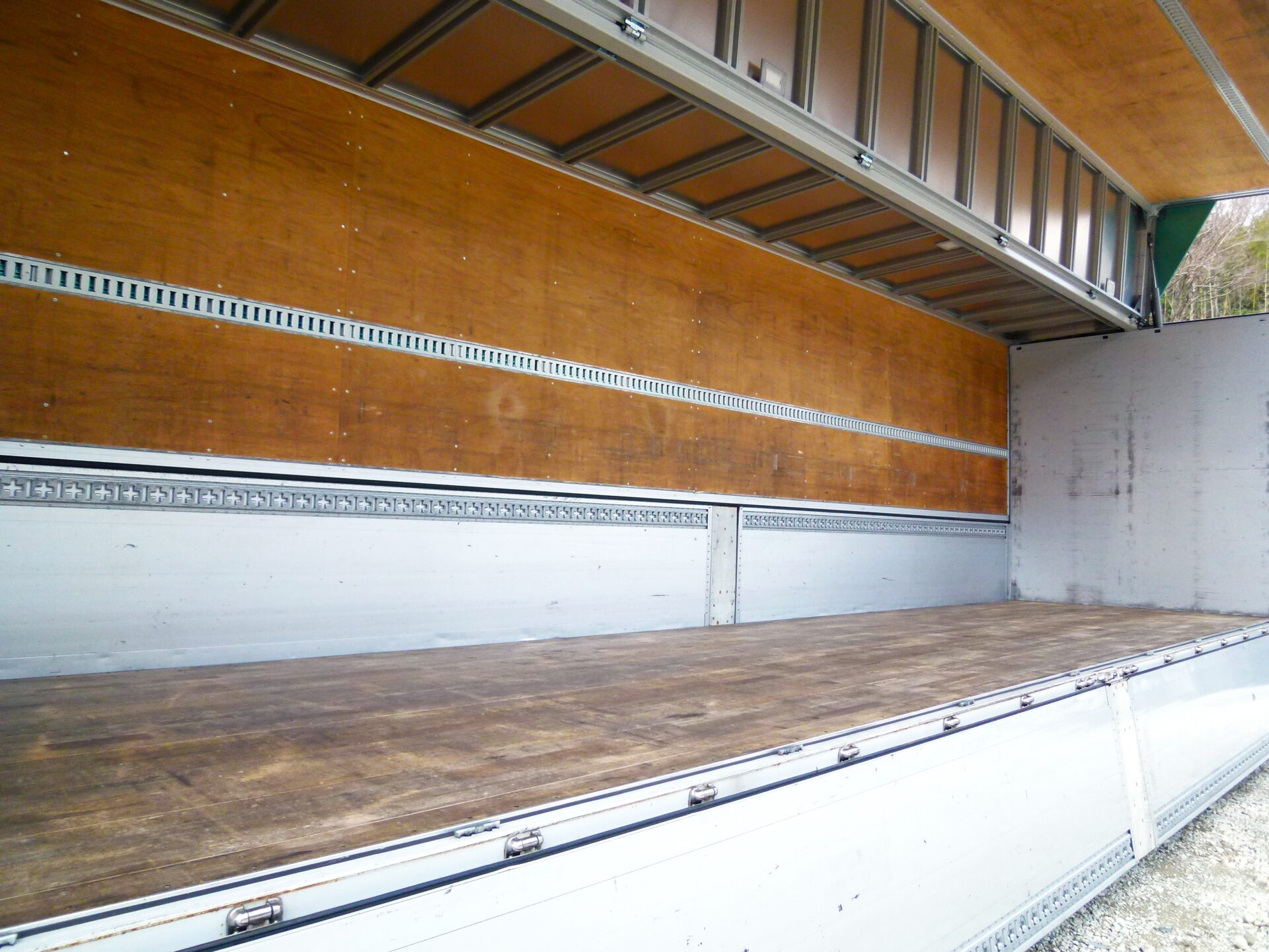 トレクス 製造番号/21W-02307 融雪仕様 床/板張り ラッシングレール/2段 引出フック/9対 工具箱1コ ハイルーフ リヤエアサス クラリオン製バックアイ メッキパーツ 庫内/スリキズ・ヘコミ